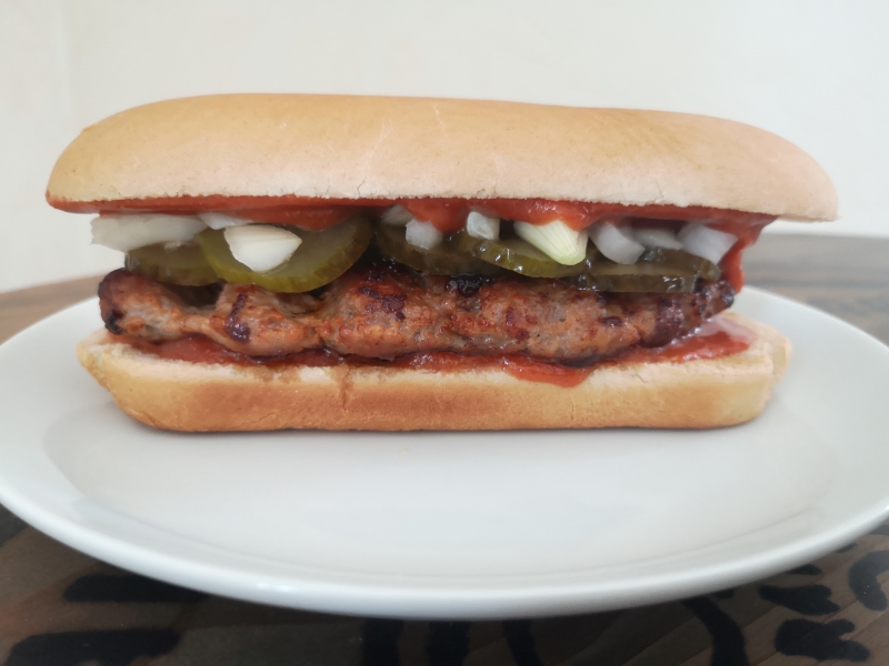 Bøfsandwich med brun sovs.