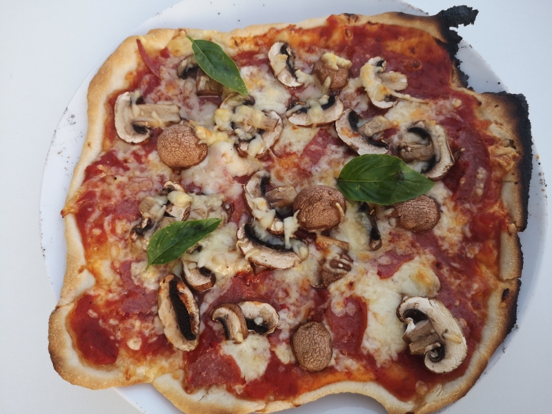 Pizza vom Pizzastein vom Grill.