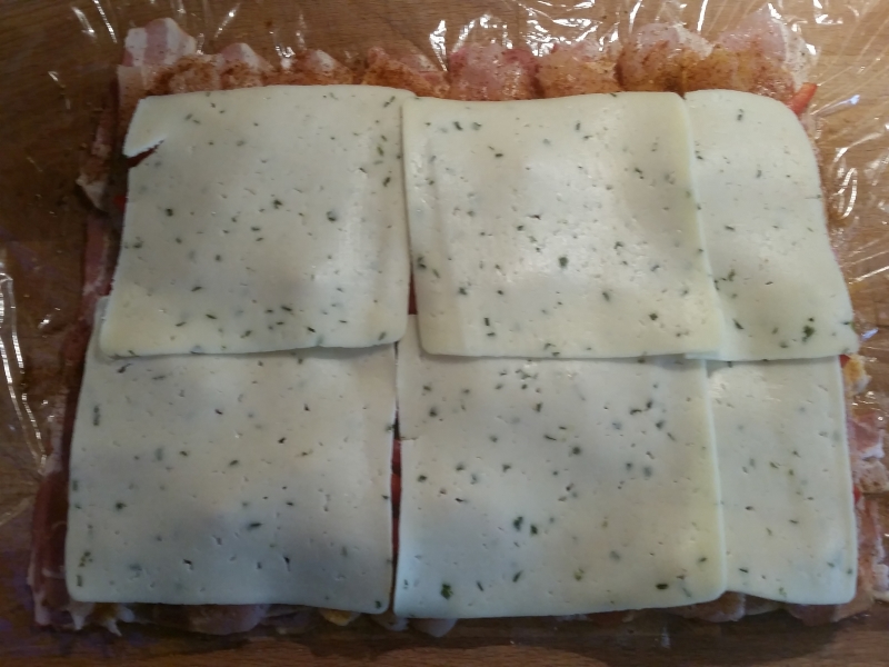 1. Aus dem Bacon auf Frischhaltefolie ein Bacon-Netz legen.