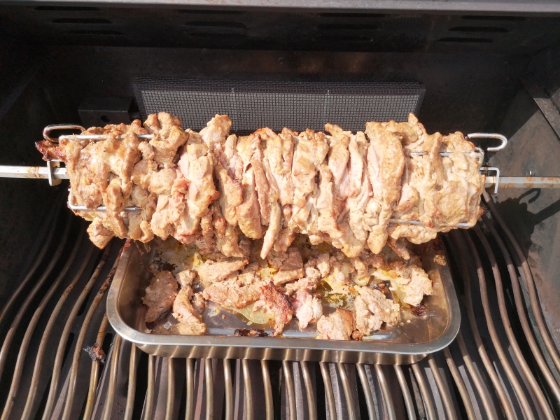 Im Gill auf der Rotisserie bei ca. 150 °C 2 Stunden bei indirekter Hitze garen.