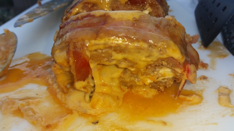 Chili Cheese Bacon Bomb angeschnitten.