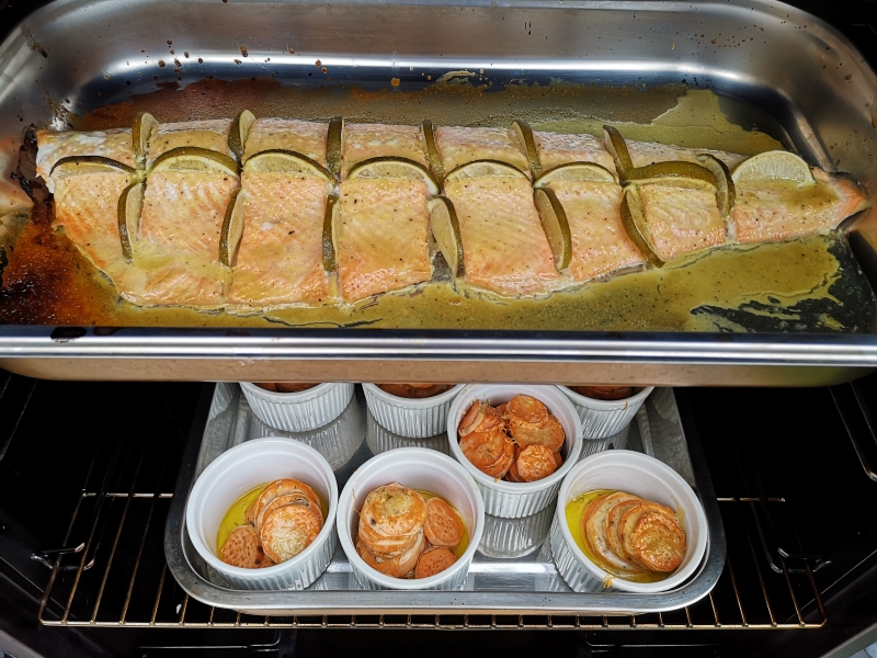 Lachs mit Süsskartoffeltürmchen mit Mozarella.