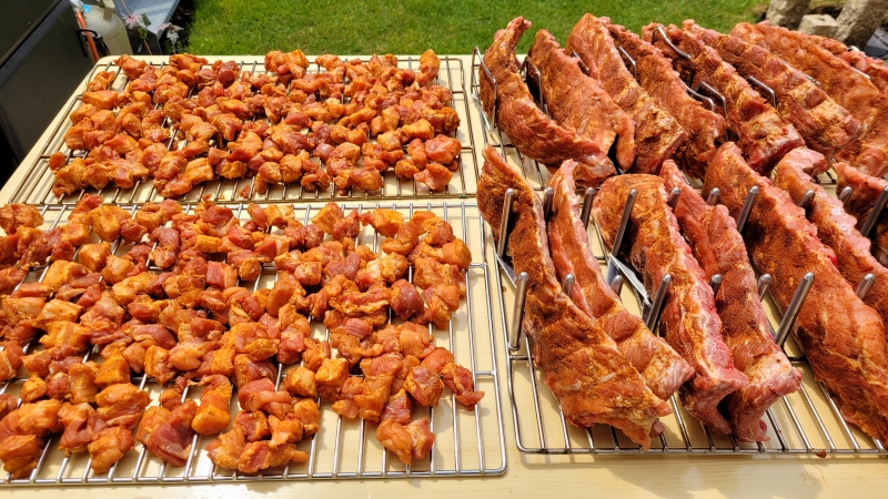 Pork Belly Burnt Ends und Spareribs für Open BBQ Ehmen.