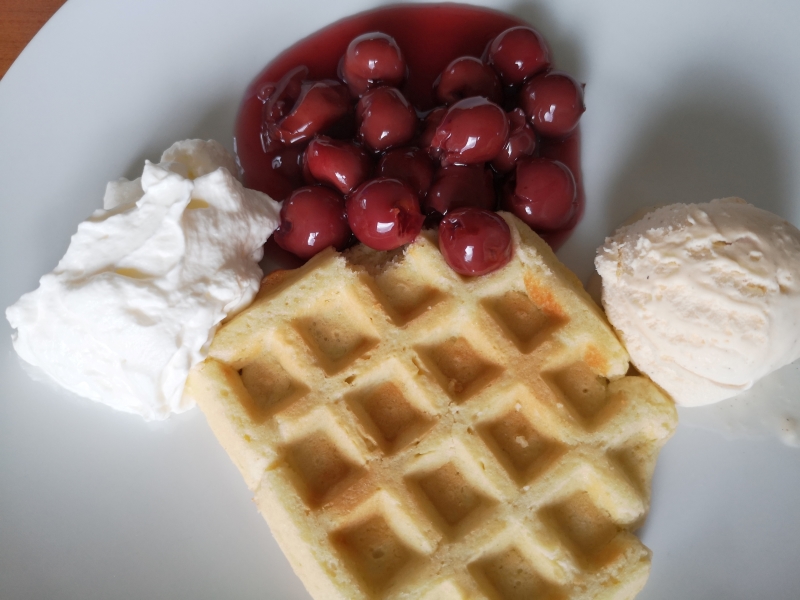 Mal was Einfaches. Das Sandwichtoaster/ Grill/ Waffeleisen Vivess SWM 7001 W hat nur etwa 700 W. Damit dauert eine Waffel 10 Minuten.